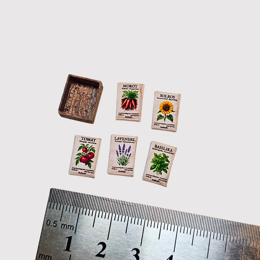 Vintage Fröpåsar i Rustik Odlingslåda – Skala 1:12